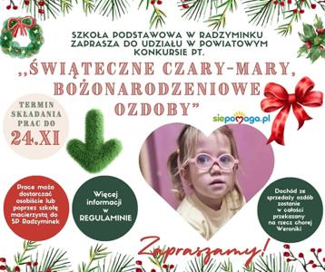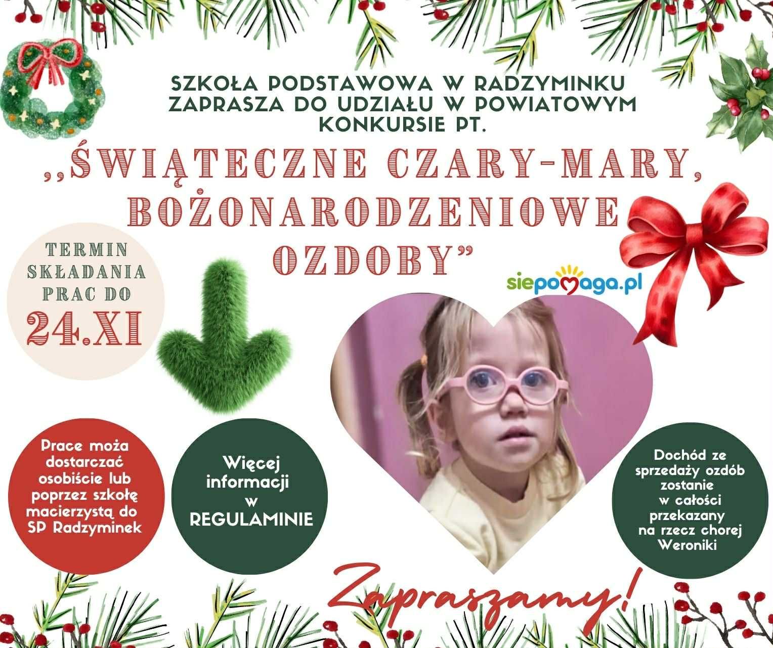 W tym roku dochód ze sprzedaży ozdób zamierzamy przekazać na leczenie Weroniki O. Rodzina dziewczynki wielokrotnie pomagała w różnych akcjach charytatywnych wspierając potrzebujących. Niestety obecnie sami znaleźli się po drugiej stronie.